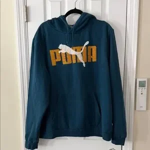 PUMA Men's Teal and Gold Hoodie
