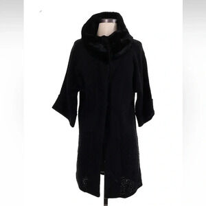 Ann Taylor | Black 3/4 Length Sleeve Merino Wool Cardigan Faux Fur Collar XS EUC