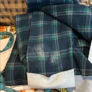 Color: Blue and green plaid pattern