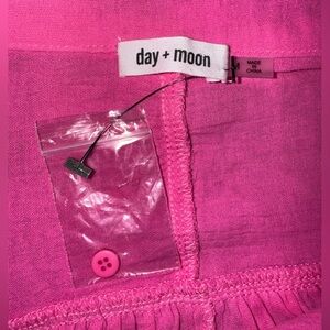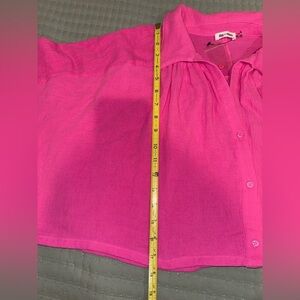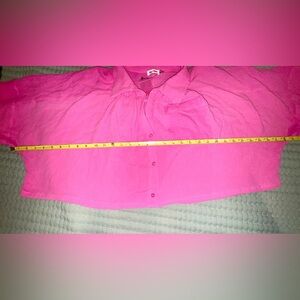 Day & Moon Bright Pink Button-Up crop gauzy bubble Shirt 100% cotton NWT Size M