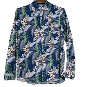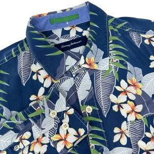 TOMMY BAHAMA Hawaiian Button Down Shirt Men's Blue Tropical Flowers Tencel LARGE