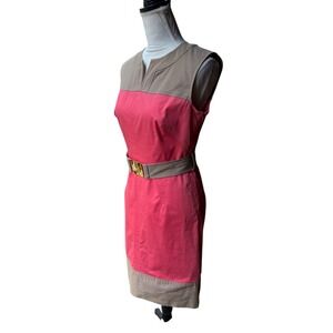 pink/tan colorblocked sleeveless mini dress