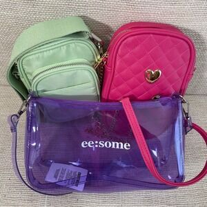 Festival, Concert, Party Pack of 3 Small Purses, Crossbody, Pink, Green, Purp.
