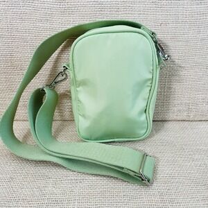 *Lime green camera style crossbody, silver crossbody, one large, one small zipper pockets, adjustable strap. 8x5 (good pre-owned condition)