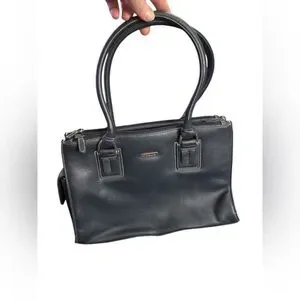 Vintage Chic Navy Faux Leather Satchel with Lots of Storage and Silver Accents