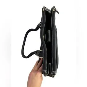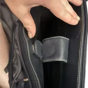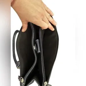 Discover the perfect blend of style and functionality with this chic navy leather satchel. Take note of the charming call back to the early 2000s era in which a space was made for a small Nokia phone. This purse is ideal for any occasion, its sleek design will complement your wardrobe effortlessly. Minimal signs of wear!