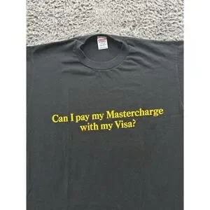 Vintage 1980's Humor Funny Tshirt "Can I Pay My Mastercharge With My Visa?" L