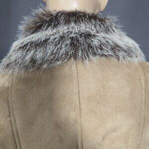 Y2K Beige Faux Fur Faux Suede Coat Jacket size S Faux Leather Buckles Penny Lane