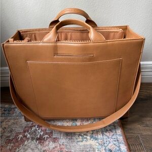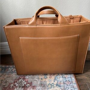 Love the look and durability of leather, but also love being vegan? Meet the Large Daily Tote, mindfully made with high-performance vegan leather and a 55% recycled REPREVE® lining, aka 7 plastic water bottles. Chic and extra spacious, the Daily works as hard as you do, with plenty of pockets, a padded tech sleeve, and a cozy neoprene water (or wine) bottle holder. Carry work essentials and extras in style, plus a fresh fit and shoes, too. Daily gets down to business with a handy luggage sleeve and a perfectly sized silhouette that slips under the airplane seat in front of you.