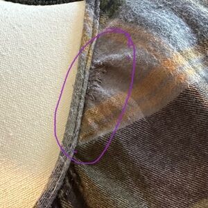 (#62)-Women’s size large flannel plaid green long sleeve shirt.