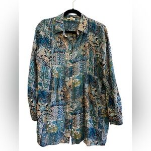 Jane & Delancey Boho Patchwork Rayon Button Down Tunic Blouse M