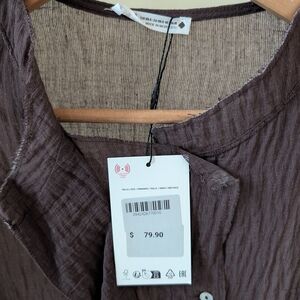 NWT Zara Textured Oversized Button-Front Linen Blend Blouse In Brown - XS/S
