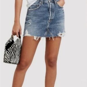 NWOT Agolde Quinn High Rise Denim Mini Skirt with Distressed Hem