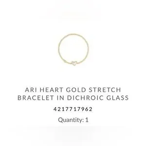 Elegant and stylish, the Ari Heart Gold Stretch Bracelet in Dichroic Glass adds a touch of sophistication to any outfit. Featuring a beautiful gold hue, this bracelet is perfect for any occasion.