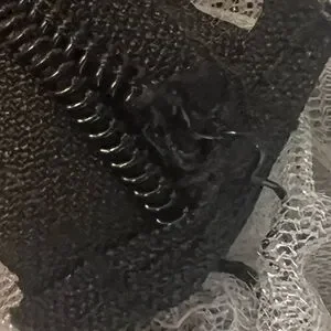 The zipper is under the left arm. It works but is slightly misaligned as shown in the last images.