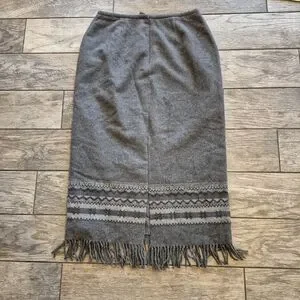 Talbots Vintage Wool Blend Fringe Skirt Fair Isle Nordic Gray Midi Size 14