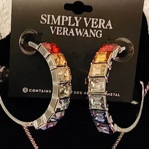 ONLY **2** PAIRS LEFT!!! NEW!!! VERA WANG Mod/Contemporary Silver Rainbow Crystal Chunky Hoop Earrings**Silver Hoops have Square Shaped Sparkly Rainbow Crystals in so many colors to match all of your Looks! You'll also Love that these Hoops are 1.75", so they Stand Out! I have a Huge Collection of VERA WANG Jewelry & More (**View other Listings to See Everything!**)!**Earrings are 1.75" Tall/Post Backs**NEW ON HANG TAG!