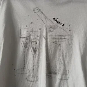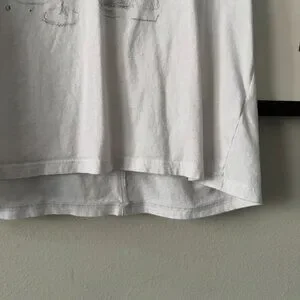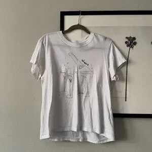 A white t-shirt with a subtle graphic design, offering a clean and versatile look for everyday wear.