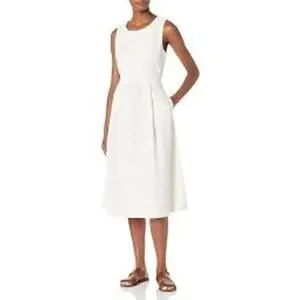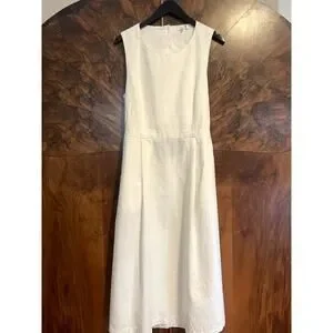 ADRIANO GOLDSCHMIED Libby Button Back Midi Dress w Pockets LINEN White Medium M