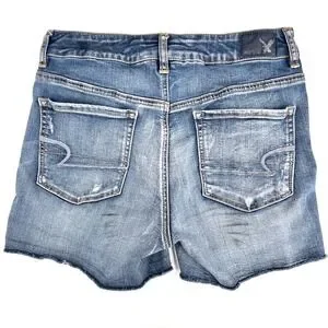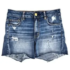 American Eagle Hi-Rise Shortie Super Stretch Distressed Denim Shorts Size 10
