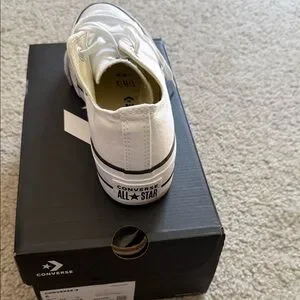 Classic white Converse sneakers. Low-top design. Iconic style.