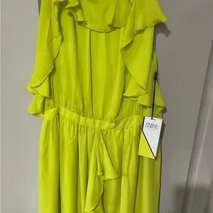 Neon yellow dress with elegant ruffle accents. Eye-catching and stylish. NWT From Target