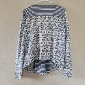 Lucky Brand Jacket Womens Sz Large Blue White Geometric Boho Western Casual Moto