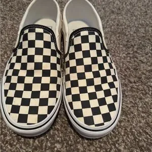 Vans Leather Black and White Checkerboard Slip-Ons