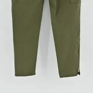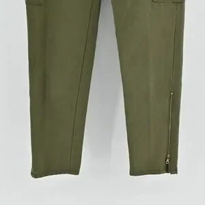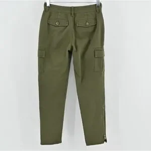 Kate Spade Havana Alma Green Cargo Pants Size 00 Slim Cropped Pocket Zip Trouser