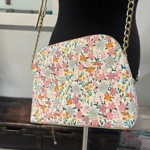The perfect spring and summer crossbody! With a splash of vibrant wildflowers and gold chain hardware.