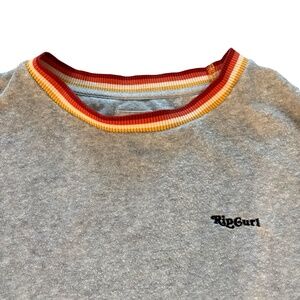 Rip Curl Grey Crewneck Sweatshirt Retro Stripe Trim