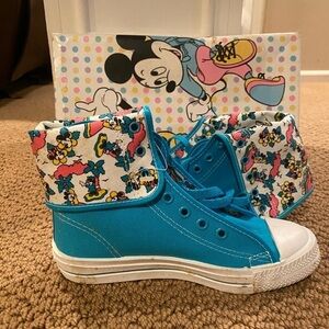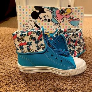 All Mickey & Minnie Mouse Converse Sneakers are extremely rare items that come from a downsized thrift shop. These items were made in the 1990s/early 2000s and are to be considered in good condition. Some items show small signs of wear but nothing too major. Some you can see storage wear which reflect the usually signs of vintage items stored for long periods of time. These are super cool items which are bound to draw attention with every wear!