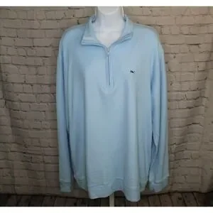 Vineyard Vines Sweater Men's L Blue 1/4 Zip Pullover Pima Cotton Golf Whale