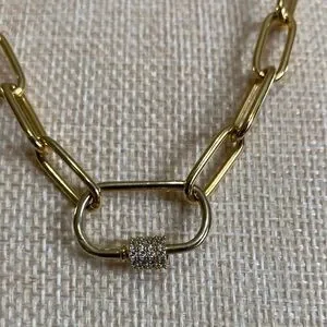 Elegant gold chain necklace with a silver accent. Perfect for adding a touch of sophistication to any outfit. 16 inches