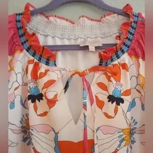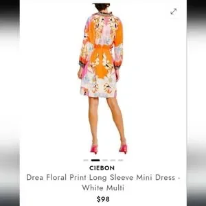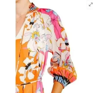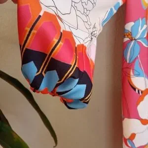 Ciebon Floral Colorful Long Sleeve Feminine Pucci Inspired Loose Fitting Fully Lined Ballon Sleeve Mini Dress, Coastal, Keyhole Neckline, Boho, Artsy, Indie, Palm Springs, Old Money, Preppy, Missing Belt, NWT, Casual, Flowy, Kitchy, Bohemian, Pop Art,