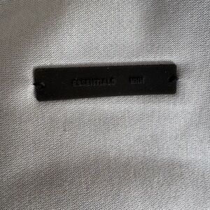 Comfortable gray hoodie. Features bold red Essentials logo. Perfect for casual wear.