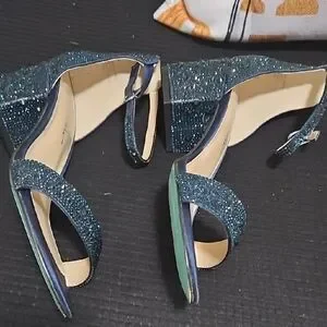2.5 inch Chic navy heels with sparkling teal beads. Perfect for a night out.