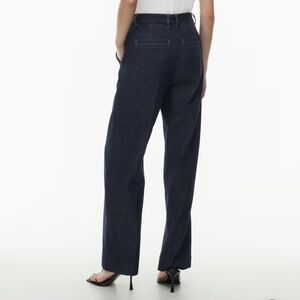 NWOT - Highly desirable Aritzia non-stretch Meetup jean in no stress dark blue. These are relaxed jeans with a flat front, front slash pockets and back welt pockets. They’re cut from soft, drapey non-stretch denim that only gets better with wear. Versatile for office or casual.