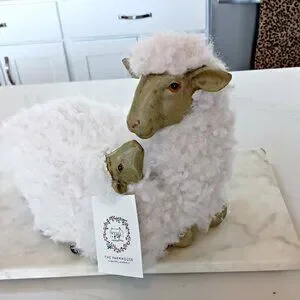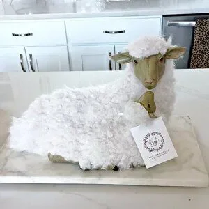 NEW! BOHO FARMHOUSE RESIN & FAUX FUR LARGE LAMB EWE DECOR
