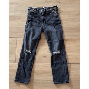 Rag & Bone Nina High Rise Ankle Flare Jeans Distressed Black W2947C104 Size 27