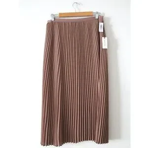 Babaton Jude Skirt / Large / Nutmeg High Waist Pleated Midi Skirt Aritzia