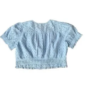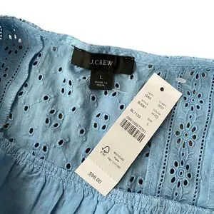 J. Crew Button-front Eyelet Cropped Top Hydrangea Blue Shirt NWT Large