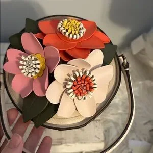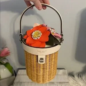 Kate spade wicker bouquet bag. This is a beautiful novelty bag with cute flowers at the top. Clean condition overall. Please note that this bag does NOT come with a removable crossbody strap. You can use this as a handbag with the smaller attached handle, or you can use a different crossbody strap. This is a rare and beautiful bag!