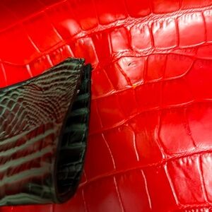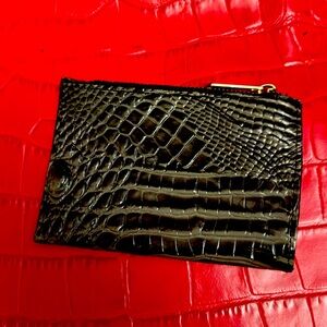 Stylish black crocodile embossed wallet by Brahmin. Sleek and elegant design.