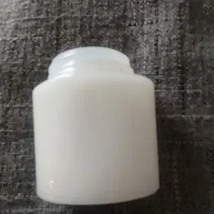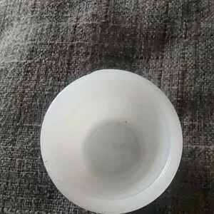1930s Mentholaltum Cream Jar Small Round Milk Glass. 2” X 1.1/2” does have a yellow spot.
