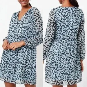 NWT LOFT Leopard Print Long Sleeve Dress Size Petite Small
