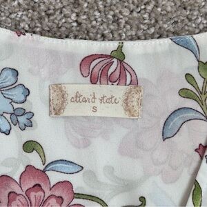 Altar’d State Women’s Cream and Pink Floral Bell Sleeve Blouse Size Small