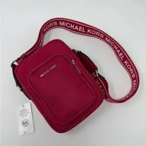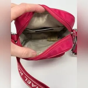 Chic Michael Kors set with a nylon camera crossbody bag and a dragonfruit pink zebra-patterned wallet. These are both NWT. Ideal for a bold style statement.