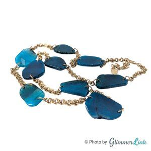 Vintage RG Graziano Blue Agate Long Gold Tone Necklace 36 Inch Layering Station