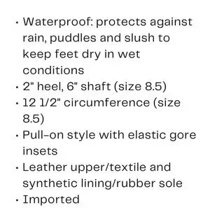 Stylish beige ankle booties with black elastic panels. Durable and comfortable for everyday wear. Size 7 medium. Barely worn! Smoke free but pet friendly home. Waterproof, 2 inch heel.